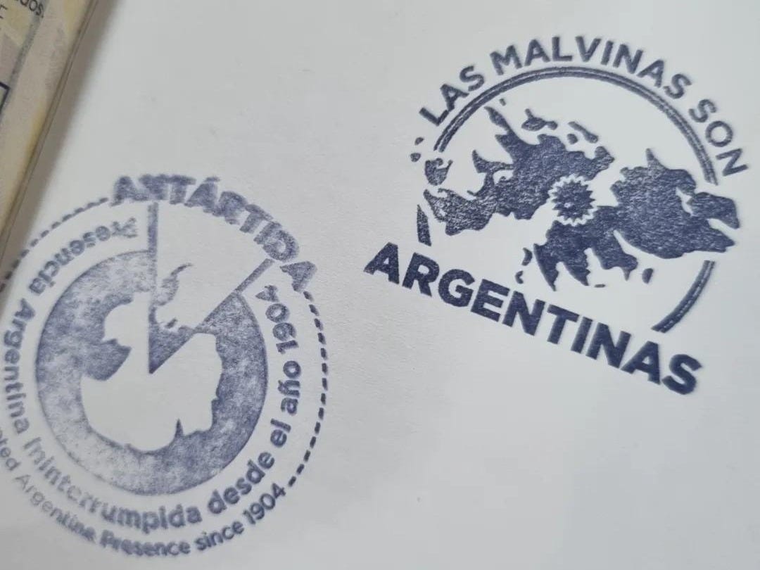 Veja novamente a foto do carimbo das Ilhas Malvinas.